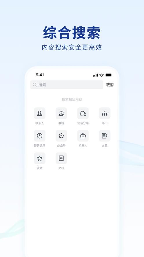 蓝信官方下载app是一款全场景智能化安全协同平台,平台拥有即时通讯,通讯录,企业云盘,通知公告,审批等等丰富功能,可以帮助用户更好的协同高效工作。
