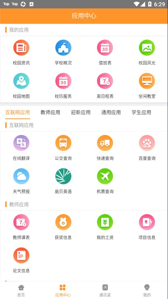 教师可查看工资信息,科研信息,论文信息,值班信息,未读邮件提醒信息,以及校园通讯录功能,