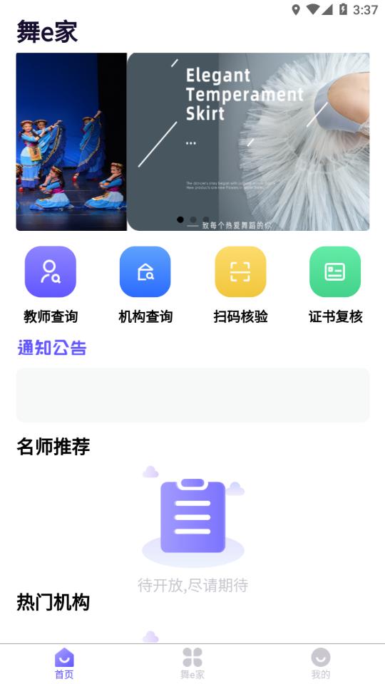 舞e家app下载北京舞蹈学院推出的考级电子证书系统,软件拥有电子证书扫码查验、复核确认等等功能服务,需要的朋友欢迎前来下载使用。