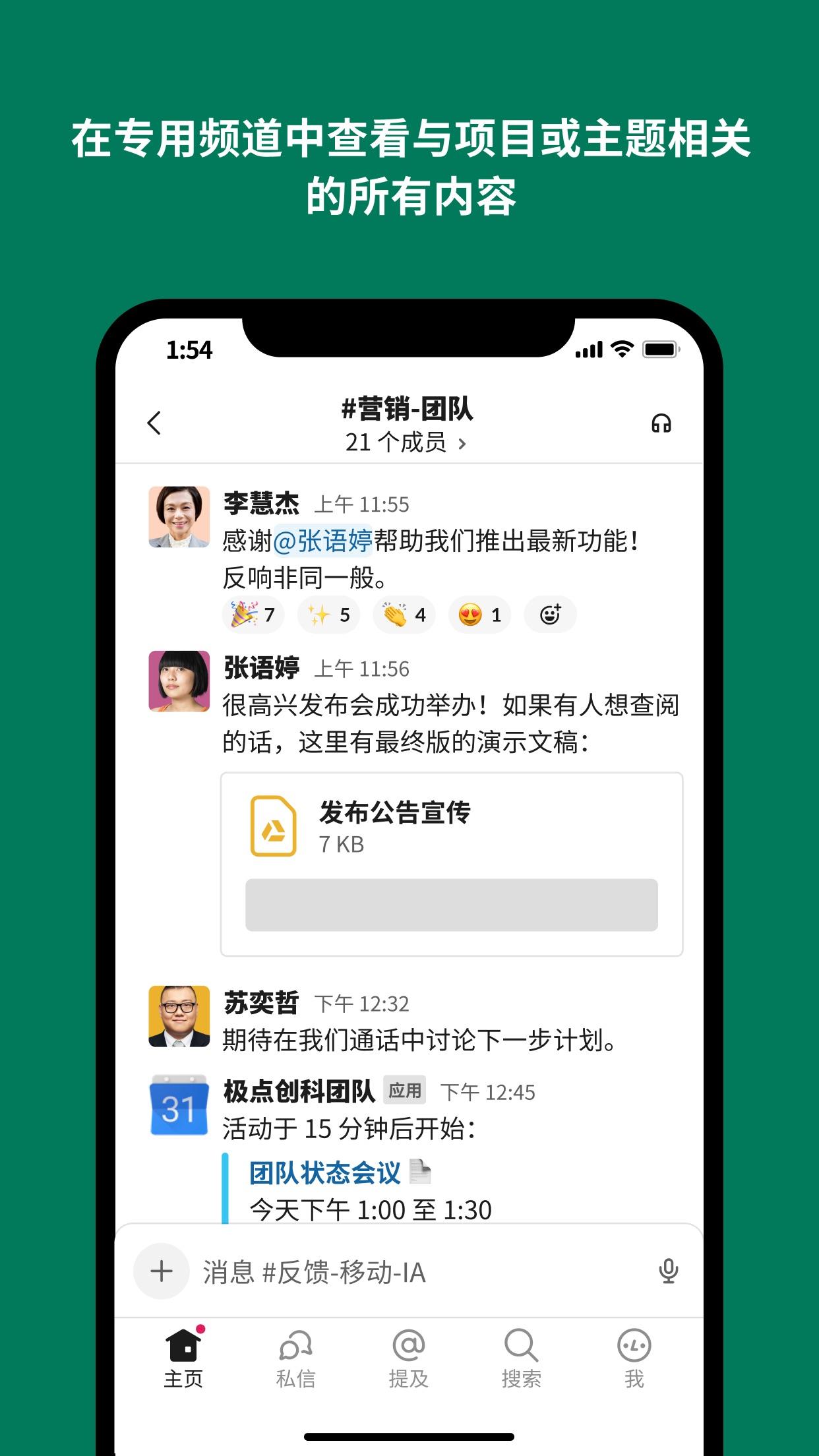 1、与团队通信,并按照主题、项目,或其他与工作相关的因素来组织你的对话