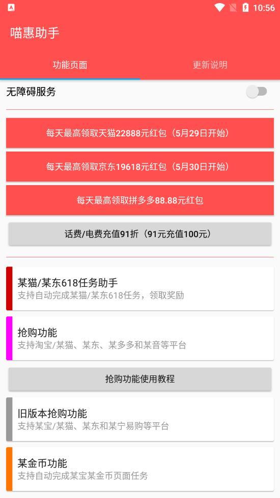 喵惠助手最新版app是一款十分实用的京东618任务助手软件。软件为用户提供了非常方便的抢购功能,用户可以在这里随时在线抢购自己需要的商品,非常的方便,还可以在这里自动挂机做任务,让用户享受更多的优惠。