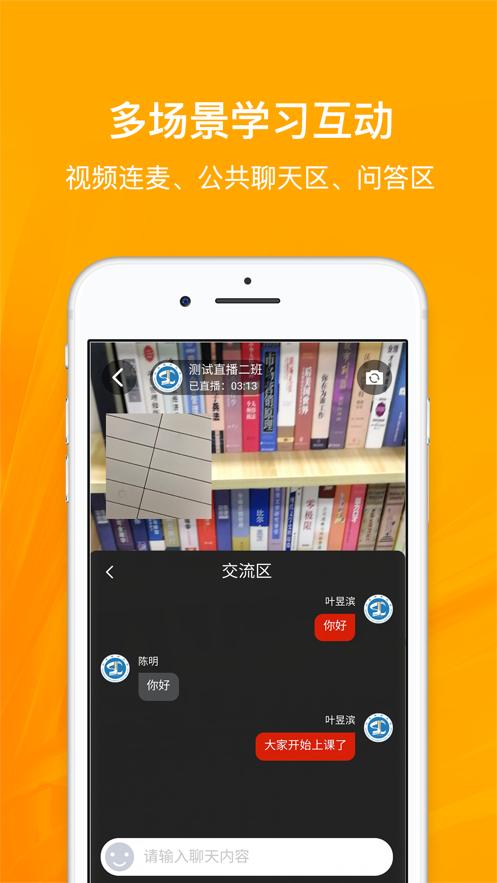 多场景学习互动:视频连麦、公共聊天区、问答区、课程回放