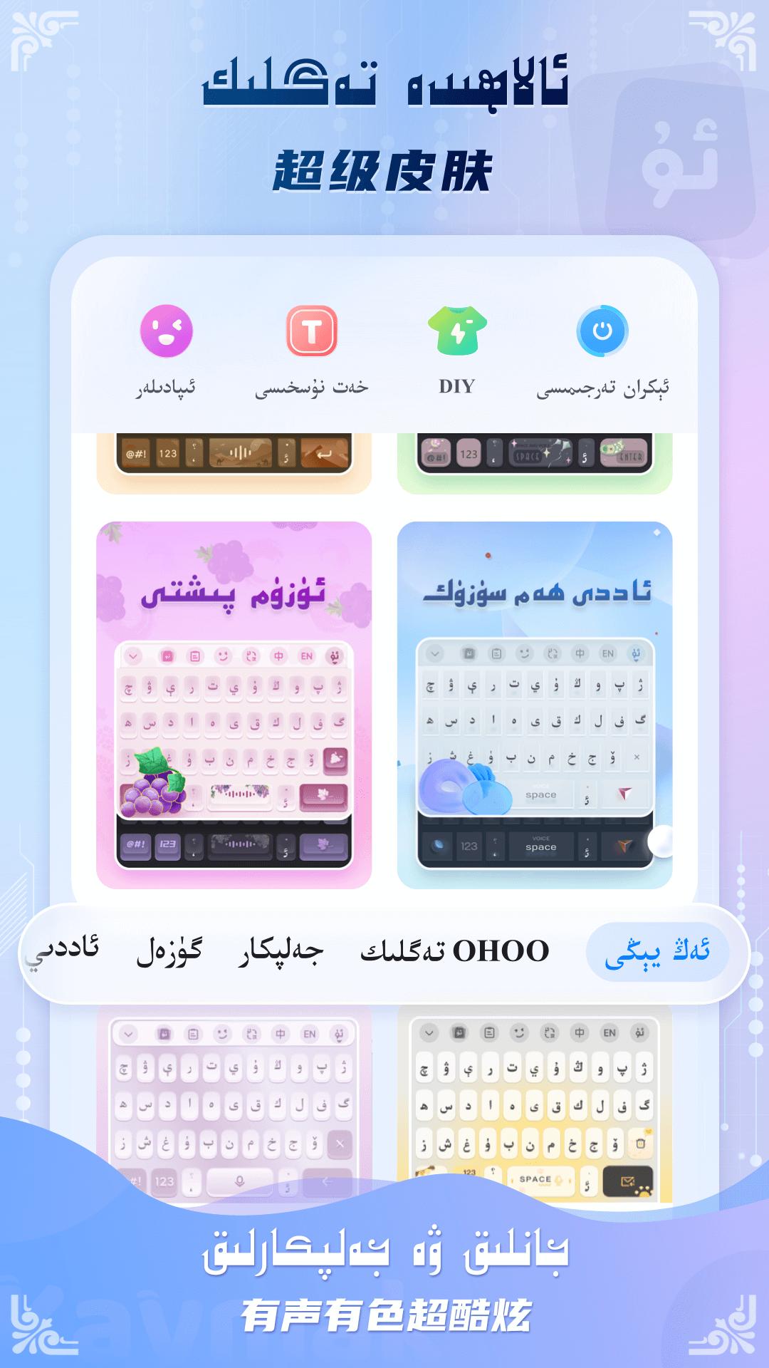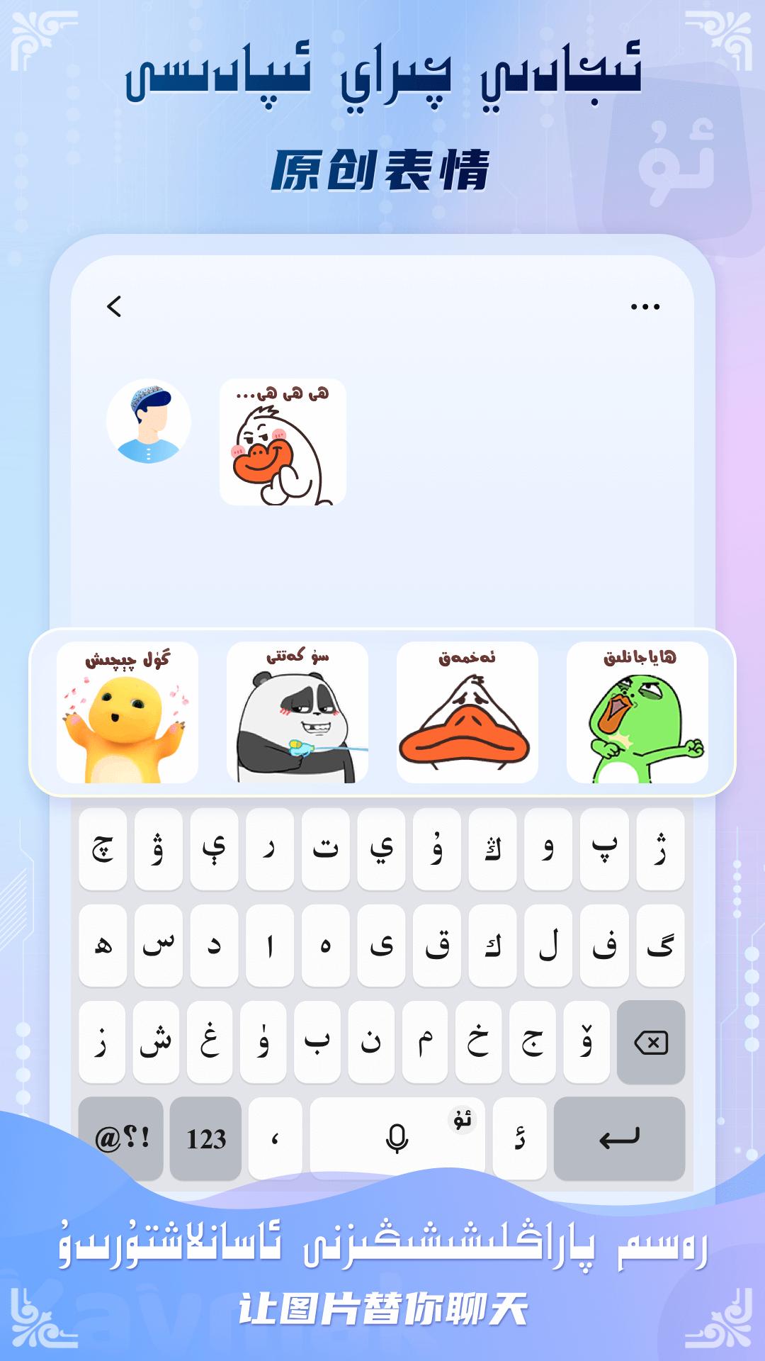 Kaymak维语输入法,支持维汉输入,简洁好用打字快,语音转写准确,屏幕翻译便捷,还有海量个性的键盘主题,萌趣的表情包,维汉输入和维汉翻译结合,更实用更有个性。