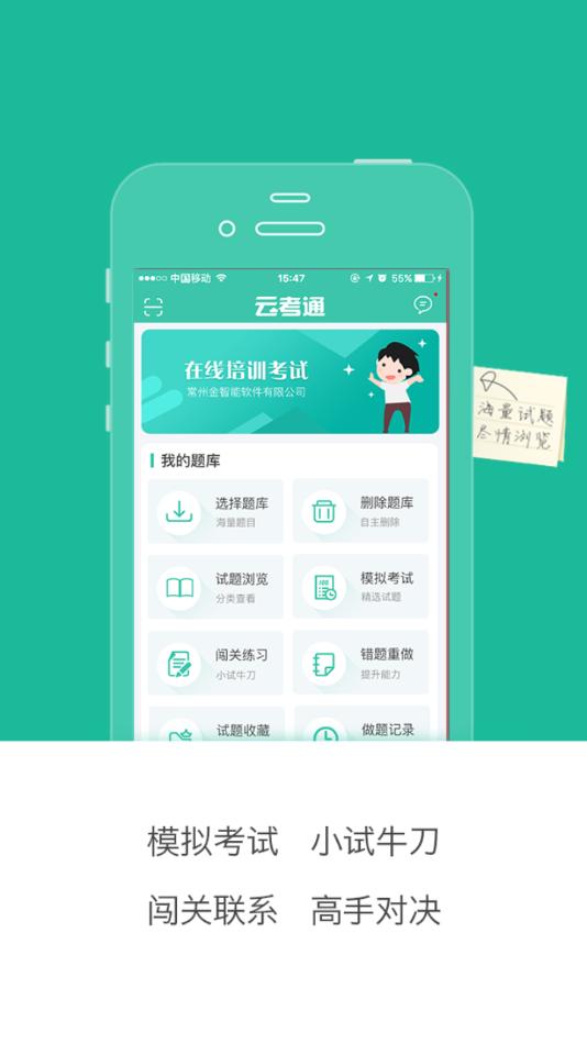 云考通包括模拟考试、试题浏览、闯关练习、知识问答、收藏夹等一系列功能。
