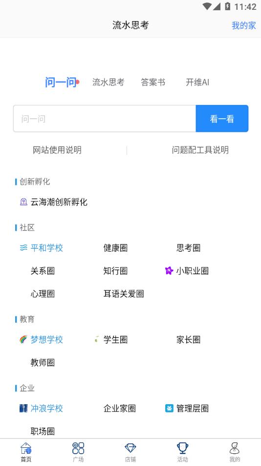 流水思考APP是一款思考思维平台,平台拥有首页,广场,店铺,活动,我的等功能板块,使用简单方便,可以帮助更好记录思维,形成思路流程。