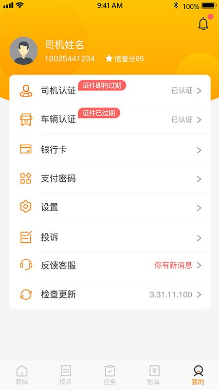 1、司机端符合无车承运人申报标准,更高于交通运输厅的评审标准。