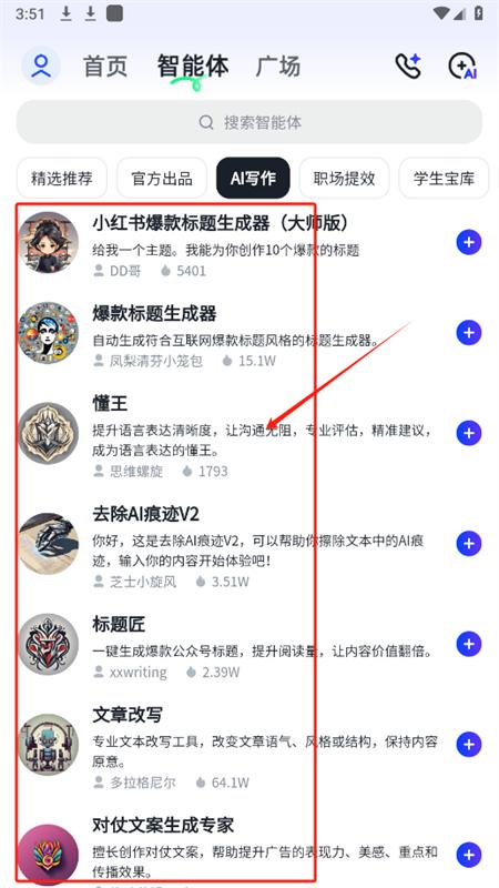 3、在智能体页面,还为大家提供了不同领域的智能AI助手