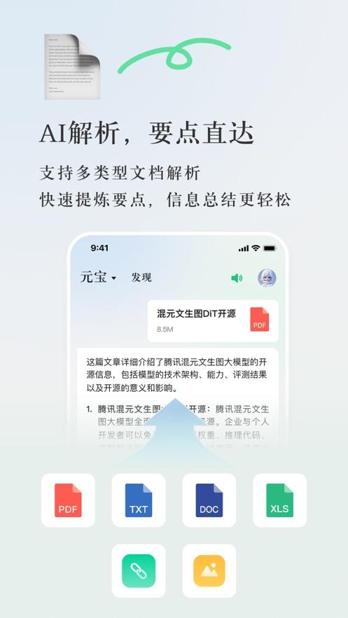 元宝支持多类型的文件、图片识别及阅读,用户可直接上传文件,快速输出要点,信息总结更轻松。