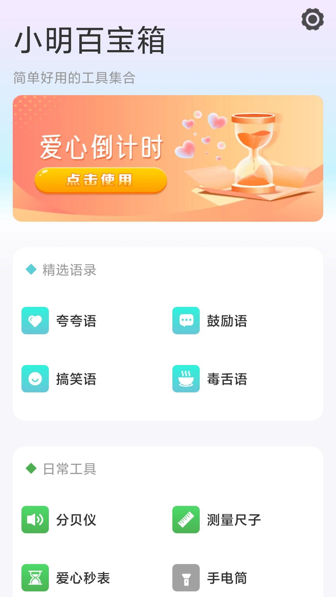 小明百宝箱APP是一款十分实用的手机工具软件,诸多特色功能满足你的日常需求,一站式满足你的诸多需求,而且最关键的是全部免费使用哟,更多好用功能等你来享。