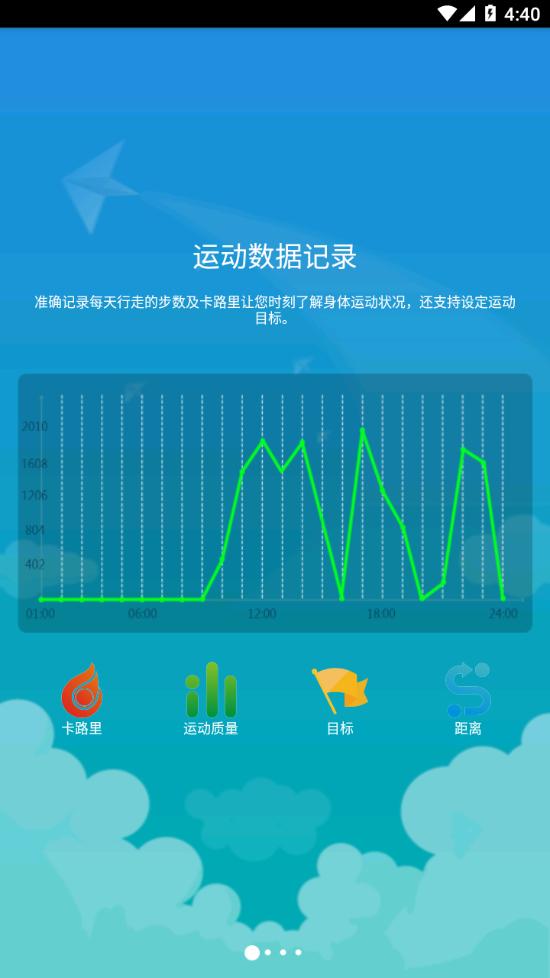 - 记录每天的运动步数,计算每日消耗的卡路里、运动距离和时间。