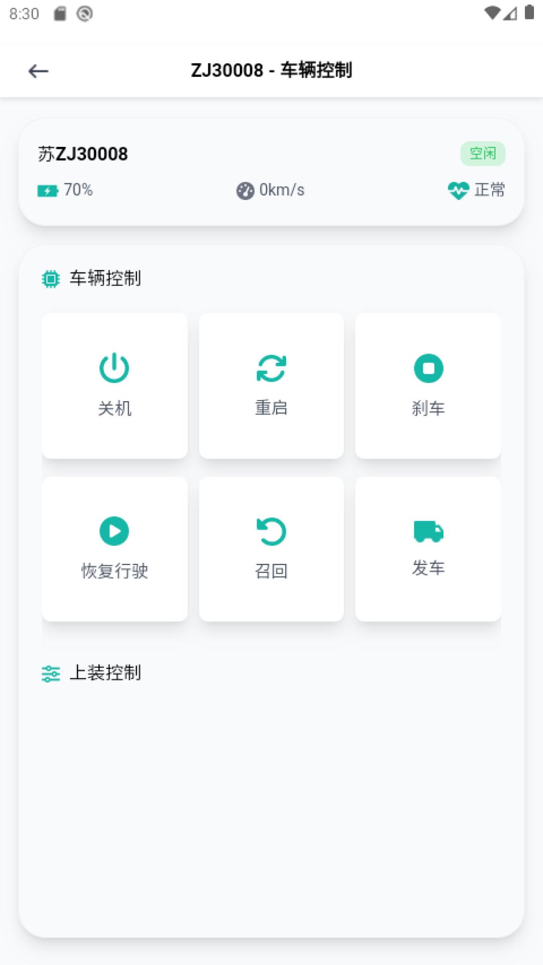极景Go软件是一款针对于该公司生产的智能商用车辆而设计的可以在手机上实现手机控制的软件,这款软件可以看到车辆的具体时间,可以在手机上进行操作任务取消等功能,有了这款手机软件就不需要用手动去机器上关机,在手机上轻轻一点就能实现关机。