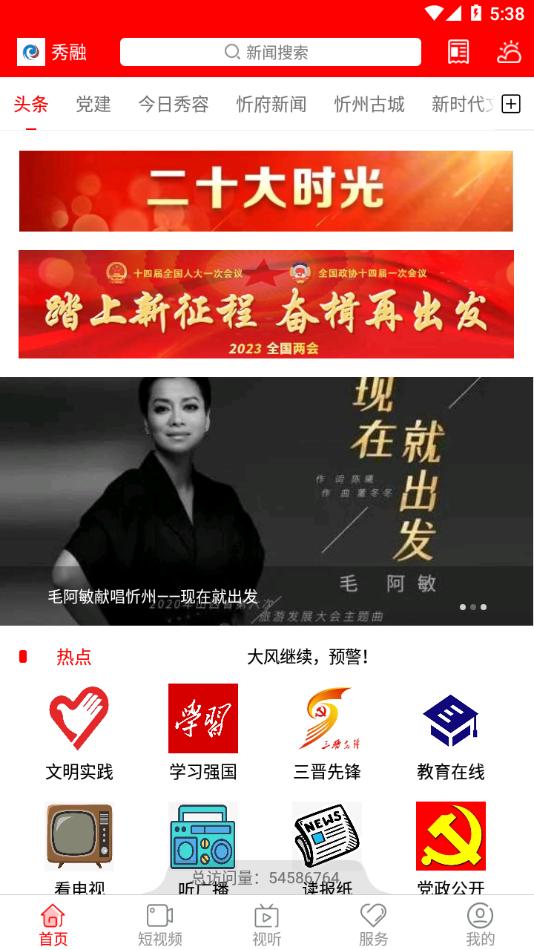 “秀融”是忻府区融媒体中心整合本地广播、电视节目、新闻发布、政务、服务等综合功能,全新打造的新闻客户端。