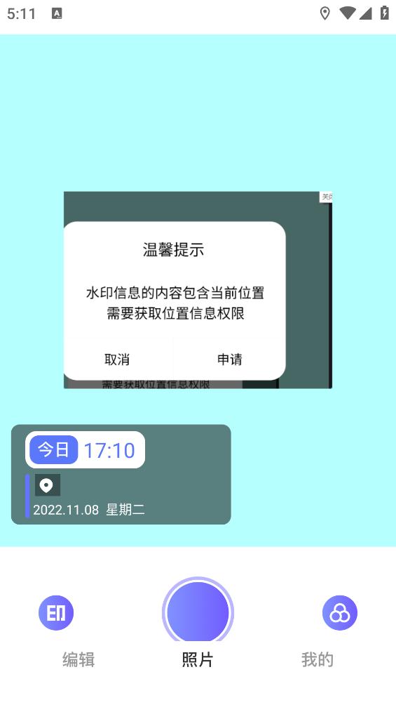 自定义水印、品牌水印、考勤打卡水印、工程水印、经纬度水印、执勤水印、农历水印、宝宝年龄出生天数水印等。