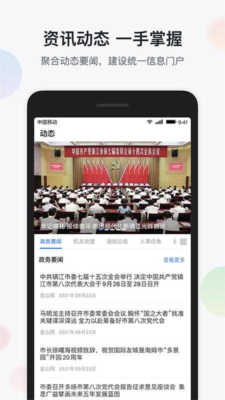 镇务通可发布本地本单位政策法规、机关党建、工作动态、通知公告等信息,第一时间直达各分支机构,方便信息下达及获取,实现全市党政信息一网通达,以便用户在闲暇之余阅读了解国家动态要闻。
