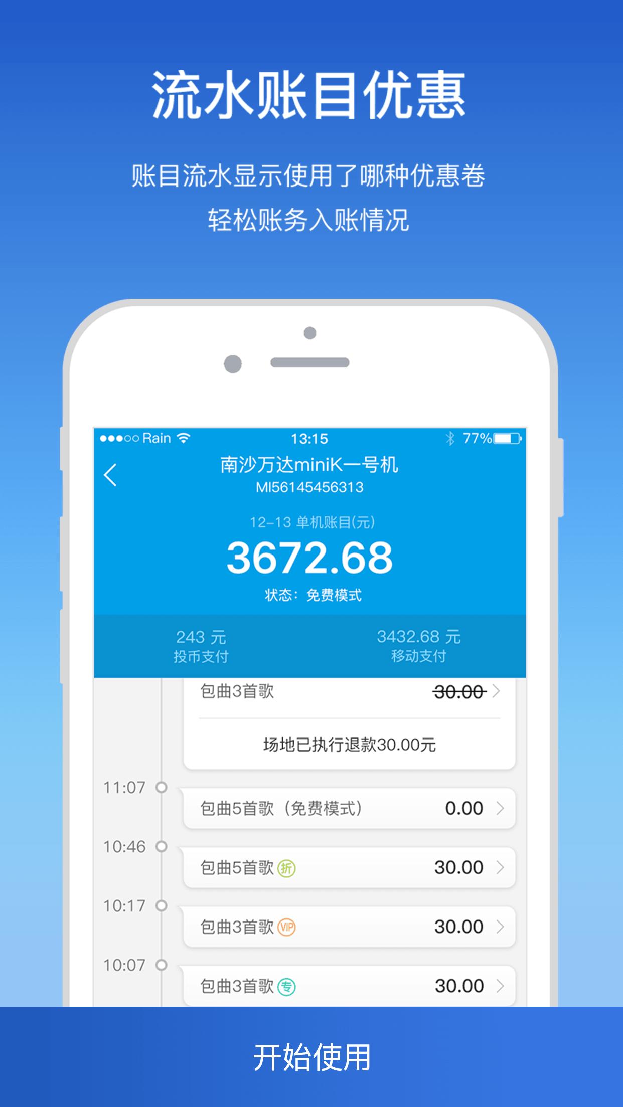艾美管家是一款服务于商家的掌上管理软件。舒适的界面设计,高效的交互解决方案,为商家提供设备采购、管理、查账、维护、查询等功能。