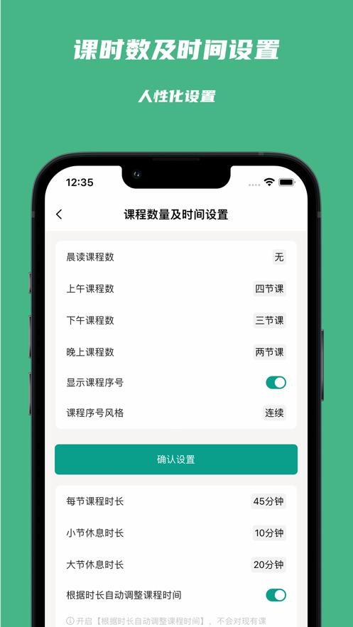 1.可自由设置上午、下午、晚上各阶段课程数量