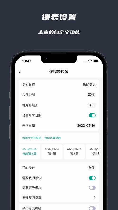 5.可设置每节课上课的周数、如全部、单独、双周、指定周