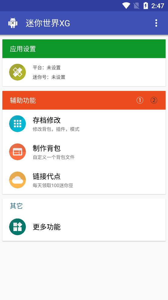 迷你世界xg app是一款十分实用的迷你世界游戏辅助工具。用户在进行迷你世界游戏时可以使用本软件,帮助用户进行多种游戏内容修改,帮助用户快速获取想要的物品,加速游戏过程,给用户最爽快的游戏体验。