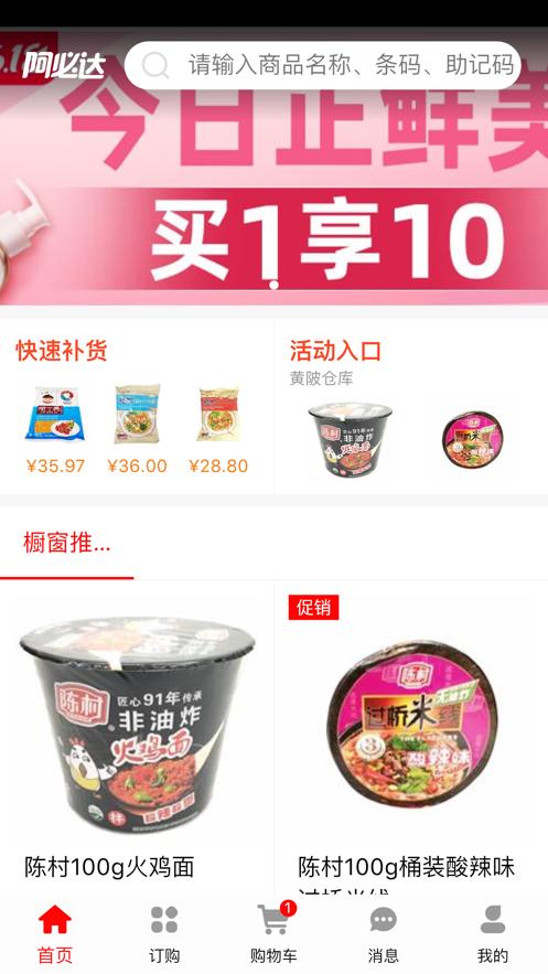 阿必达订货平台app下载是一款手机订货服务平台,平台首页,订购,购物车,消息,我的等功能板块,可以帮助用户更好的手机订货。