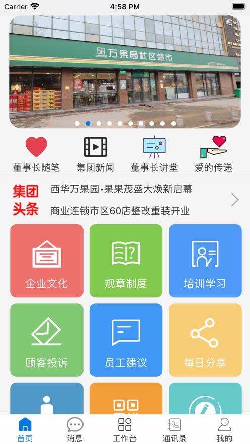 万果园家园APP下载是河南万果园实业集团有限公司官方推出,软件拥有消息,工作台,通讯录等等功能服务,可以帮助员工更好的移动高效工作。