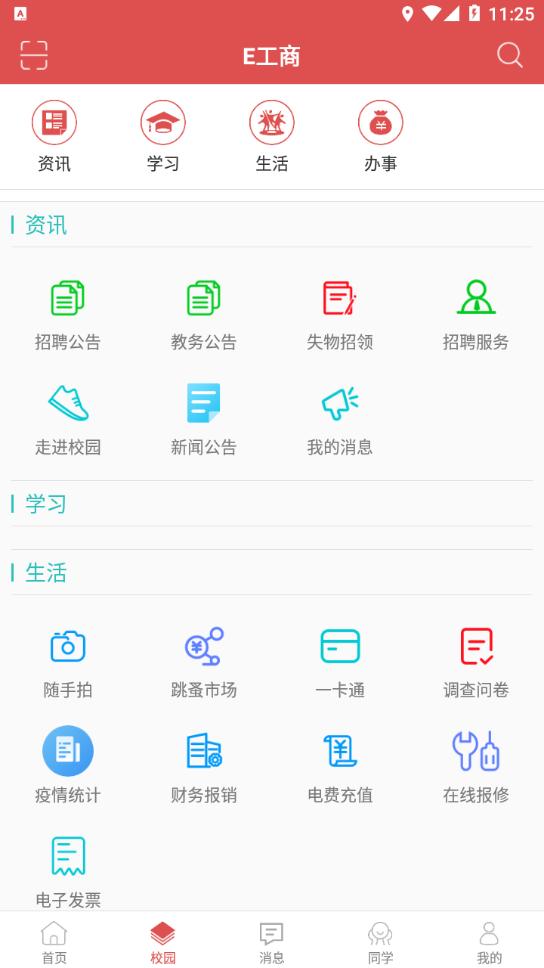e工商,打造覆盖学习、生活、管理全场景的学信智慧校园应用平台。