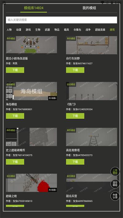 3、这里有多种模组可以选择,如:人物、动漫、游戏、生物、武器、物品、载具、合集包、战争、超级英雄、建筑等