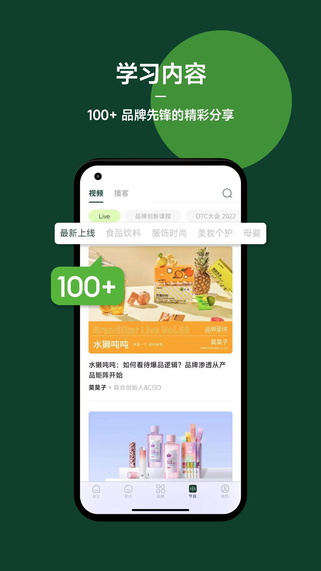 品牌星球的内容涵盖图文、播客和视频等形式,栏目包括:品牌星球专访、太长不看、品牌升级、品牌首发等;