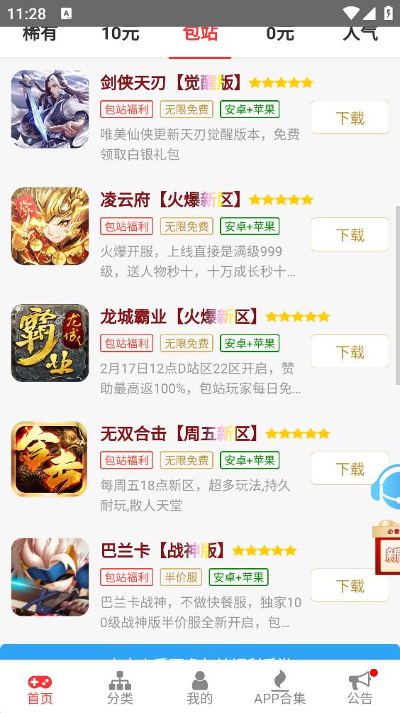 2、【游戏齐全】传奇、卡牌、三国、策略、回合等应有尽有;