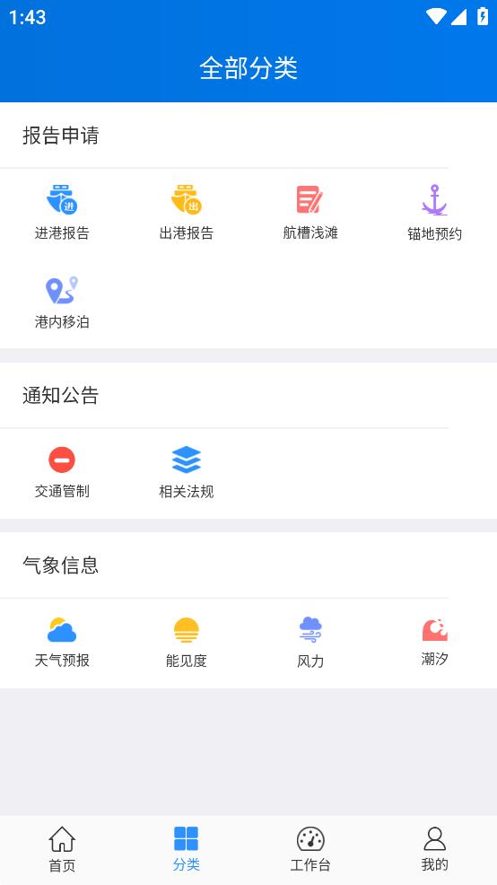 浙海行app(船舶交通组织服务管理平台)是一款提供海事运输的办公平台,能够进行一体化的港口相关的管理,为浙江省各类船舶用户提供多项更高效的船舶统计登记,会及时发布相关天气预报信息,线上还有便捷的交通管制信息查询,非常的方便实用。