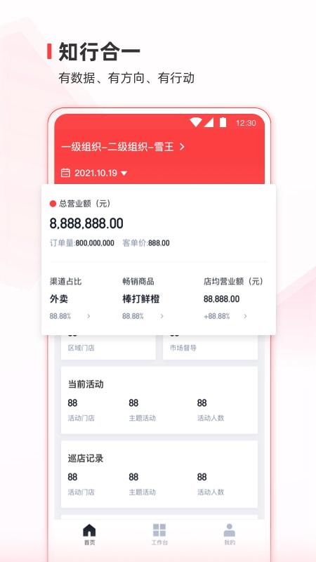 1、【经营数据】 自动同步区域或组织范围内的经营数据,呈现数据细节