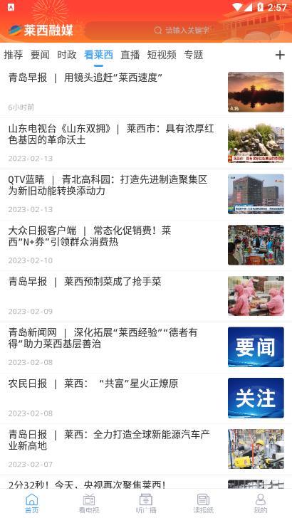 这是莱西市融媒体中心承办并重点打造的新媒体传播平台。集电视视频、新闻资讯、政务信息、社会热点、生活服务等于一体,用户可以在平台上享受电视广播直播、点播和回看服务,阅读电子报纸、参与直播互动,满足随时随地观看电视、了解信息、互动爆料的需求。