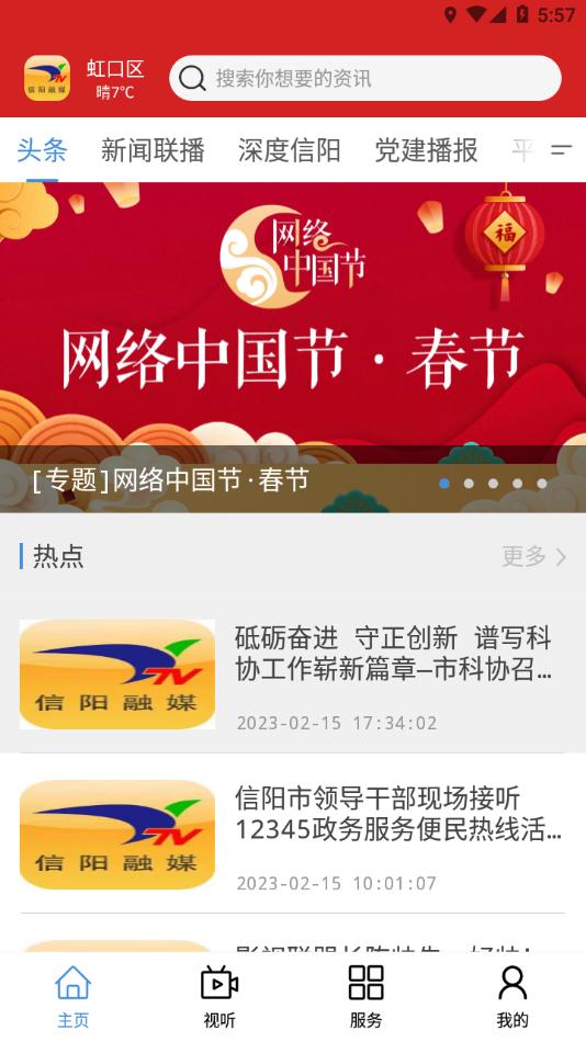 《信阳融媒》客户端现有【推荐】【热点】【评论】【音视图】【版面】等十余个栏目,是信阳广播电视台优秀作品和“品牌”栏目的“移动数据库”,