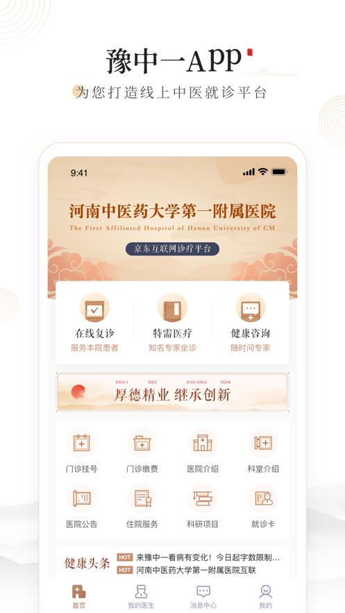 豫中一app下载是河南中医药大学一附院官方推出,软件拥有在线复诊,特需医疗,便民门诊,云诊室等等功能服务,可以帮助用户更好的就医治病。