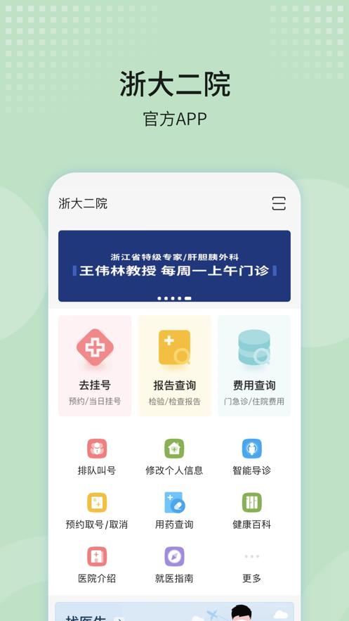浙大二院app官方下载是一款掌上医院应用,软件拥有预约挂号,取报告单,费用查询等等丰富功能,可以帮助用户更智慧便捷就医看病。