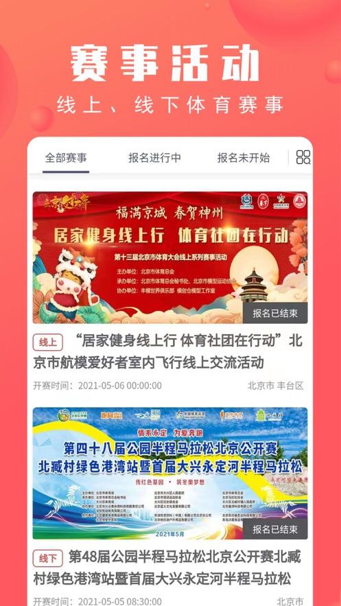 广大体育爱好者可以通过APP随时随地了解北京市全民健身赛事活动的信息,可以加入体育社团组织,也可以参与各类赛事活动。