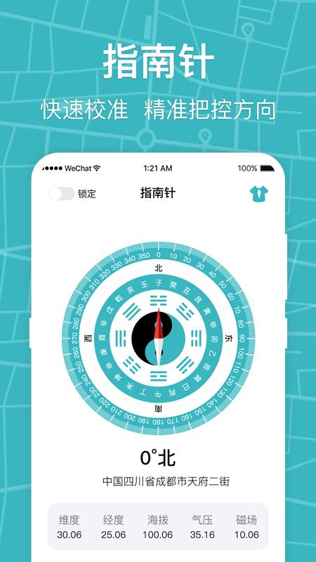 超便捷的指南针定位工具,集指南针和地图二合一,打破以往单纯指针界面,配以地图,更直观,定位更准确,让你不再迷失方向,还包含简易水平仪让你再摆放,悬挂物品时更好的找准平衡,当您来到一个陌生得地方或者迷路不要怕,打开指南, 它会给你一个的方向和位置带你走出困境找准方向。
