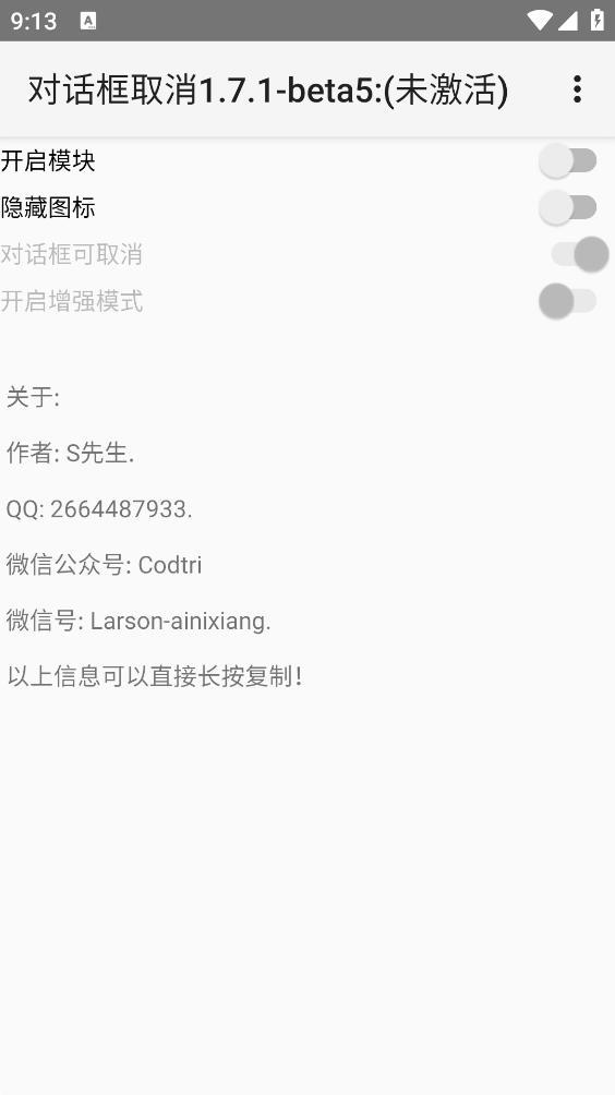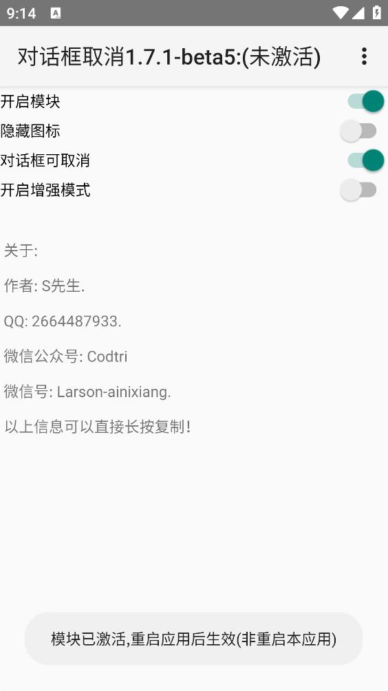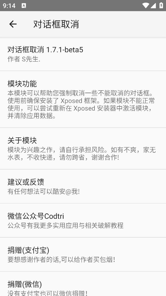 对话框取消app是一款很好用的手机Xposed模块软件,让你可以轻松取消一些不能够取消的对话框,让你轻松告别强制更新的对话框,操作也是非常简单的。