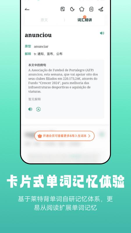 - 全新艾宾浩斯和人工智能练习模式,让你训练阅读听力的同时不知不觉增加葡萄牙语词汇量