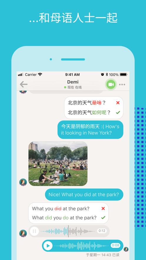融入外国文化,并利用语音信息、语音和视频通话改善你的口说技巧。