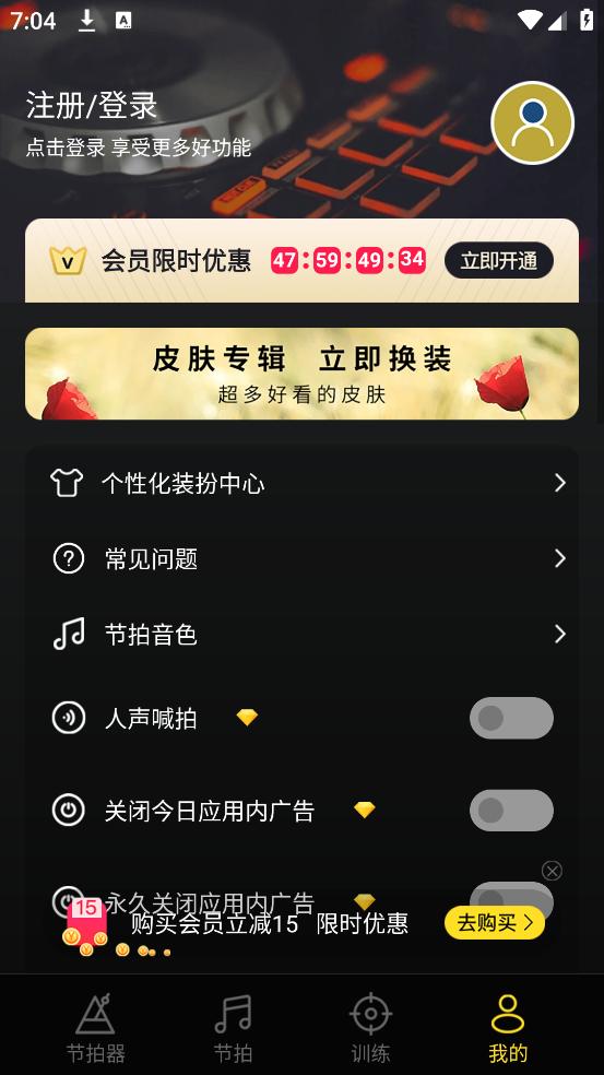 3. 可调节设置:用户可以根据自己的喜好和需求,自定义节拍速度、音量、音效等参数。