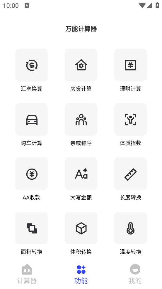 全能计算器万能堪称运算领域的多面能手。界面简洁,上手轻松,各类运算可快速精准完成。支持汇率换算、房贷计算、理财计算、购车计算、亲戚称呼等多元功能,无论工作学习还是生活理财,它都是你便捷高效的得力运算助手,随时随地满足多样计算需求 。