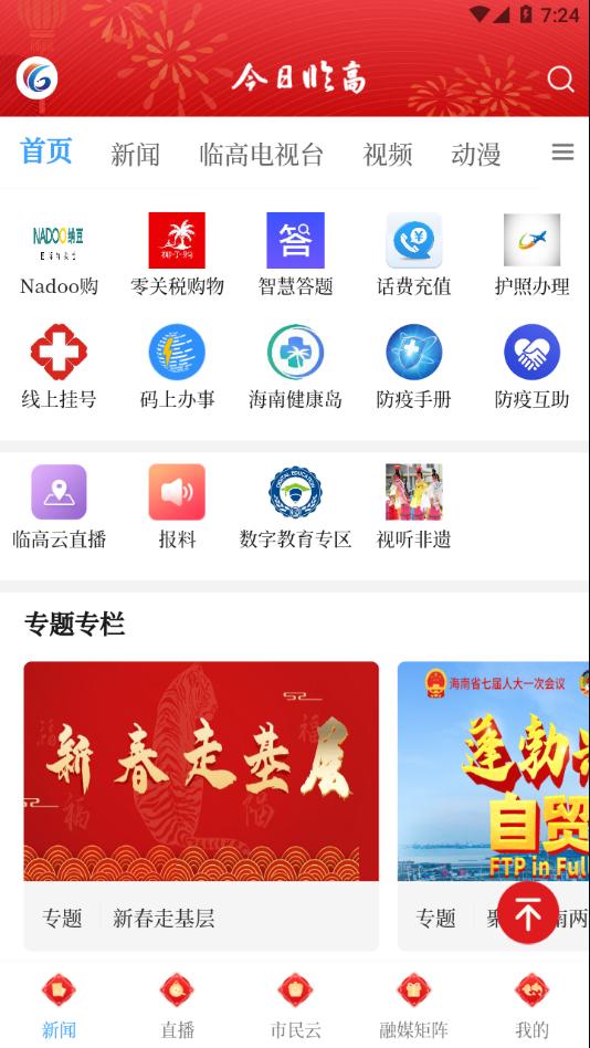 今日临高app下载是专为临高制作的融媒体移动平台,平台拥有新闻资讯,直播,融媒体,融媒矩阵等等功能板块,可以帮助更好的引导及服务临高。