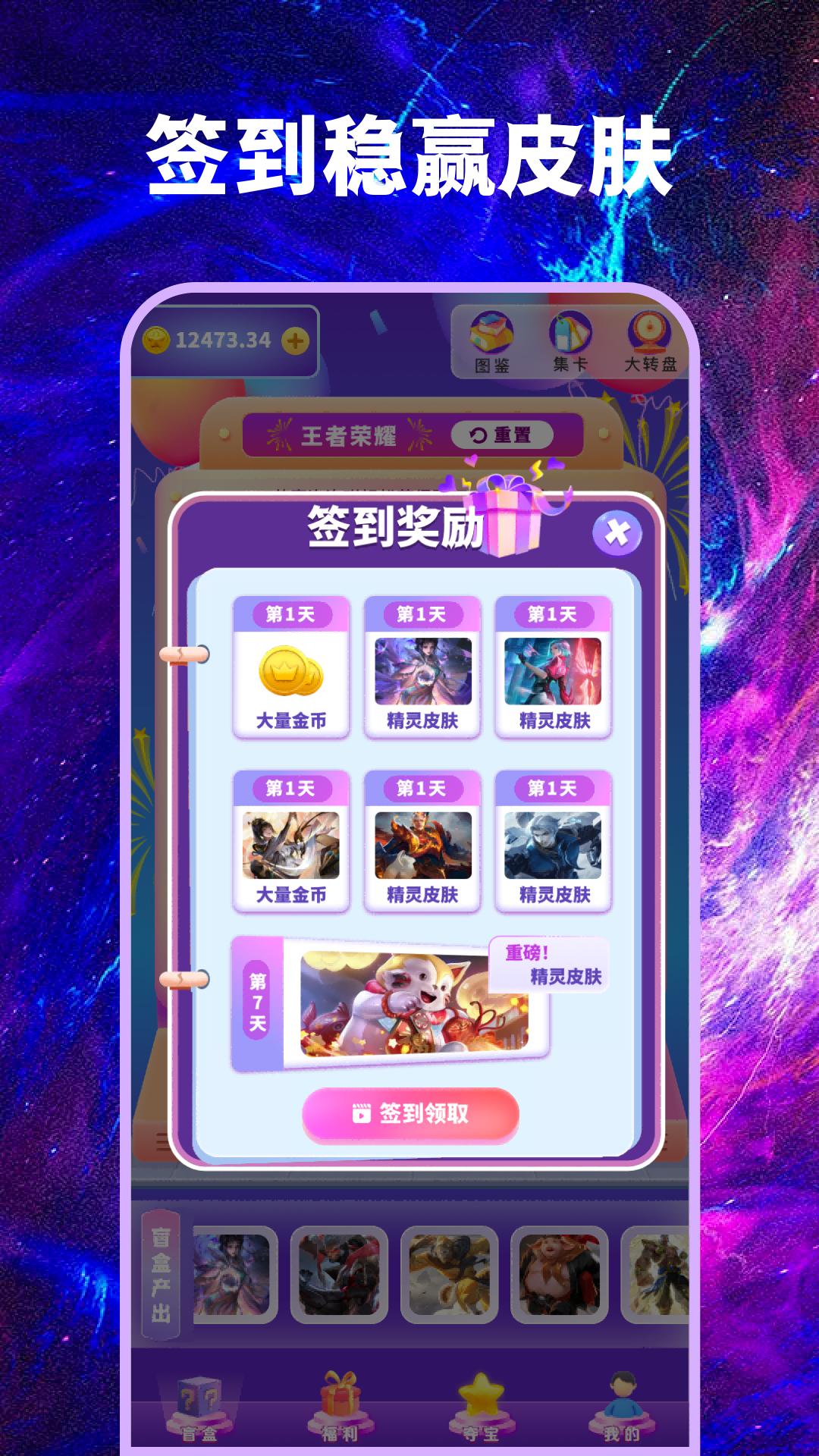 寻心皮肤福利app是一款以开盲盒方式,提供游戏皮肤领取的软件,许多玩家福利会呈现,来此关注一波吧,在这里我们不用花钱,也不用去充值,直接参与活动,免费获得限量的游戏道具与皮肤,只要完成任务就可以了,秒速打到你的账户,无需等待!