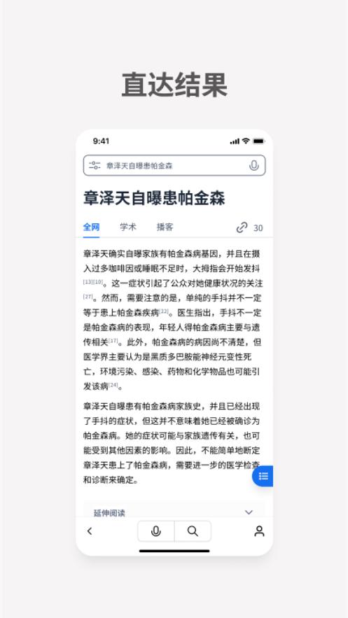 界面清爽简洁,没有广告,直达结果,让搜索回归本质;