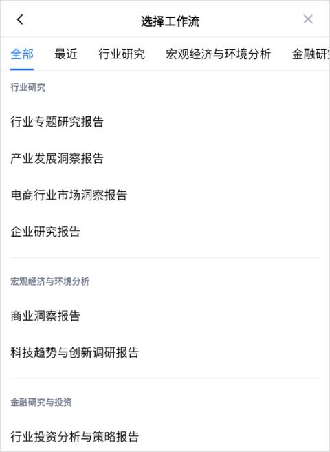 1、无论是行业调研还是报告撰写,秘塔AI覆盖7大类别、25个工作场景,适用于行业分析、经济研判、投资建议以及运营规划等多种需求: