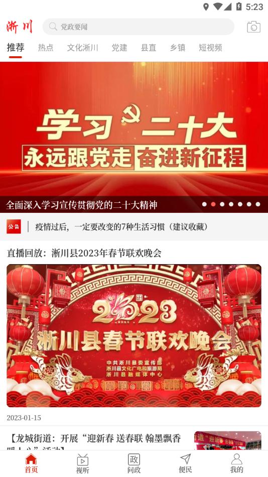 云上淅川app是专为淅川县制作的融媒体移动平台,平台拥有新闻资讯,问政,视听,便民等等功能板块,是引导及服务淅川县的好平台。
