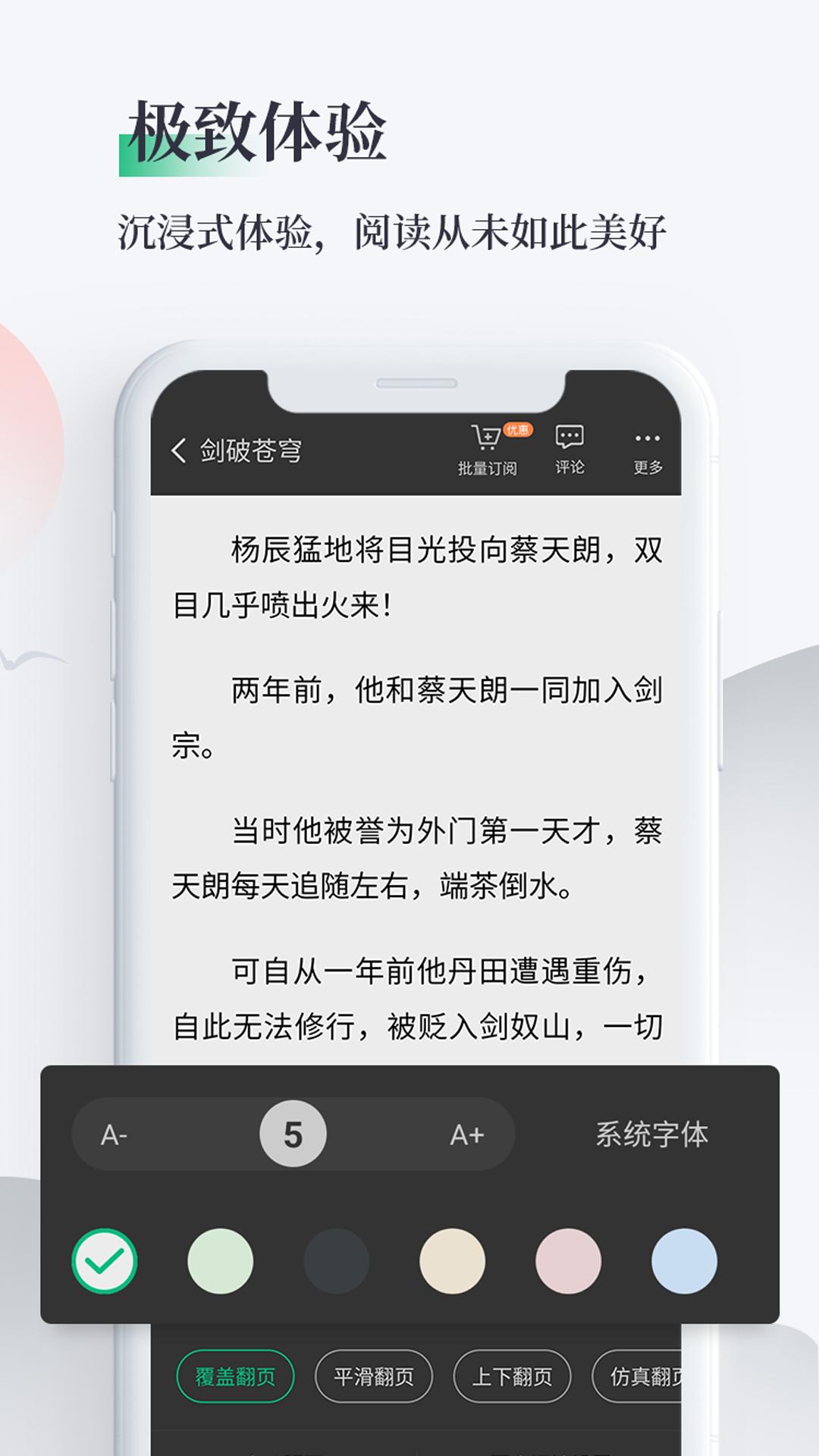 2.护眼模式:平台为用户设置贴心护眼模式,还能自定义亮度、背景、字体,保护用户用眼健康。