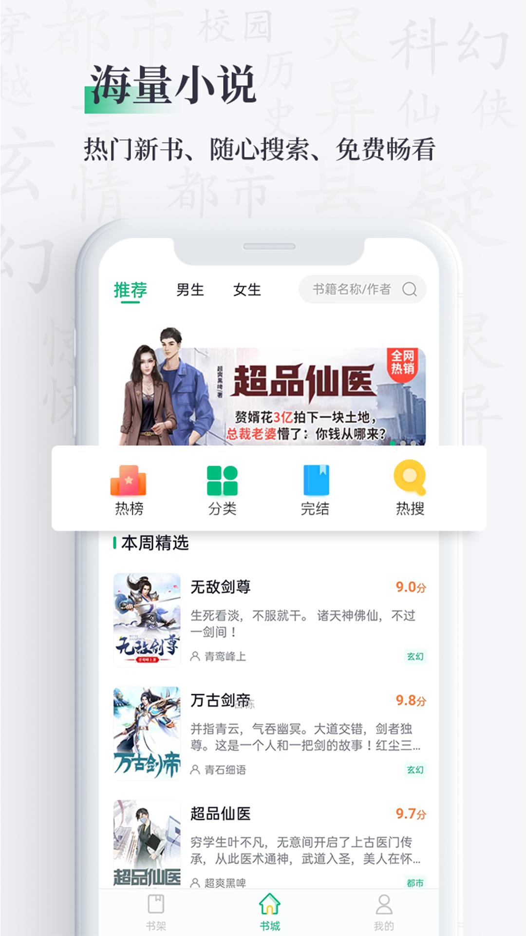 【书城】小编根据频道特色,为您优选当前热门优质小说,让您随时畅选阅读;