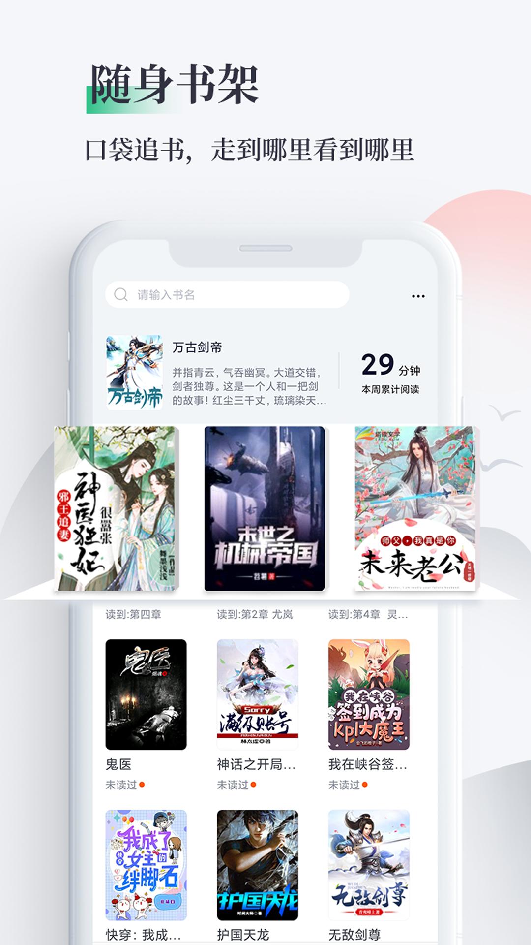 【书架】可以根据自己的喜好设置书籍排列方式,也可以跟踪小说更新情况;