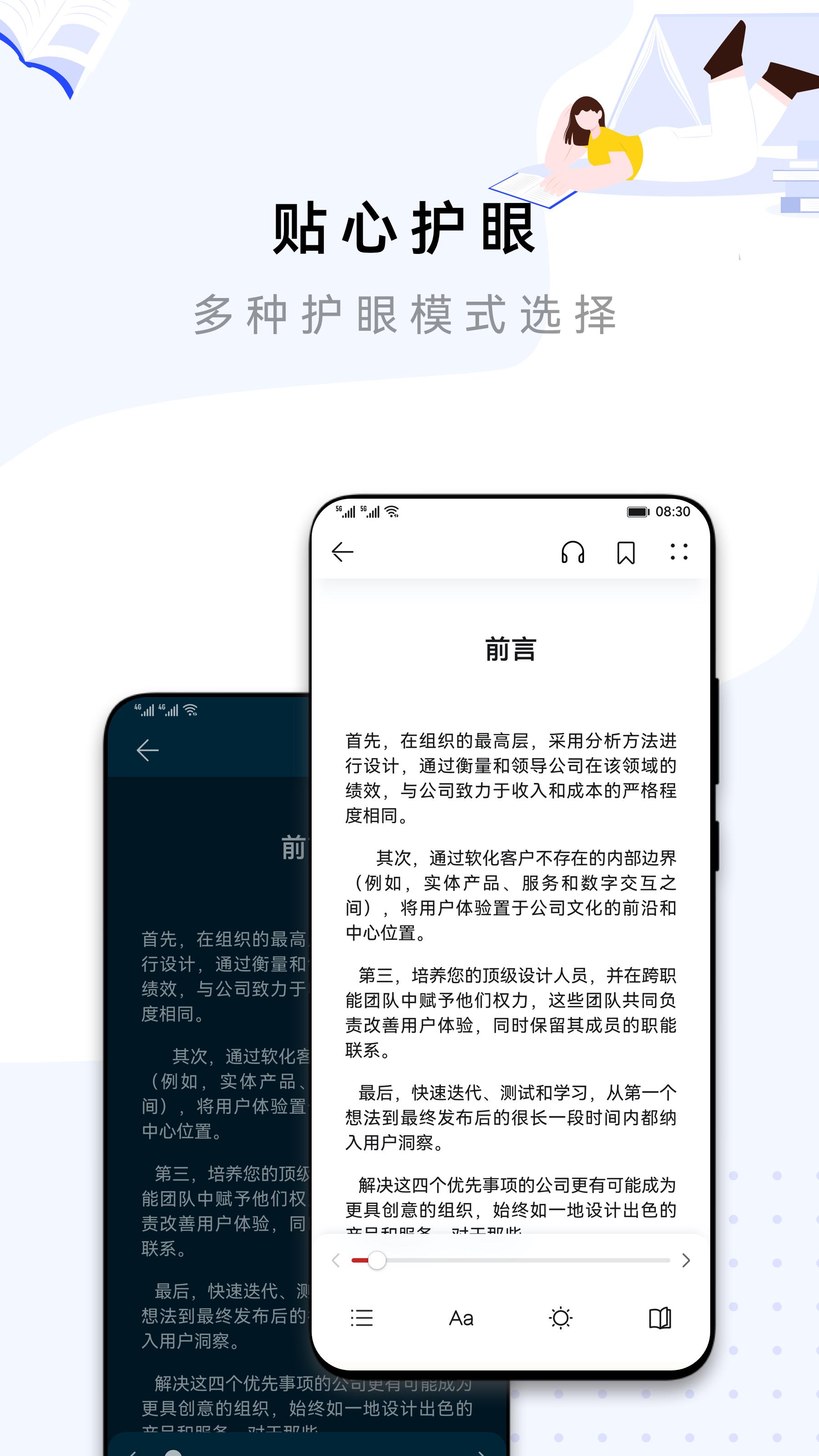 【定制阅读】精美排版,风格随心设定,满足个性化阅读习惯。
